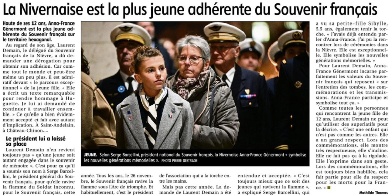 Découvrez le parcours hors normes d’Anna-France Génermont, une jeune dompierroise qui porte haut le flambeau du Souvenir Français et qui est le plus jeune membre du Souvenir Français.